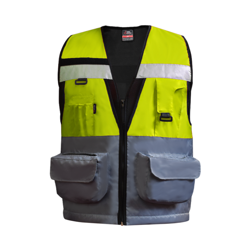 Chaleco geólogo bicolor confortable y suave para la piel. Su diseño se caracteriza por brindar propiedades antiácidas, antiestáticas, gran resistencia al trato rudo, lavados industriales y gran protección a los rayos UV.