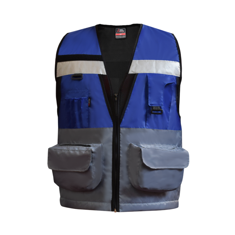 Chaleco geólogo bicolor confortable y suave para la piel. Su diseño se caracteriza por brindar propiedades antiácidas, antiestáticas, gran resistencia al trato rudo, lavados industriales y gran protección a los rayos UV.