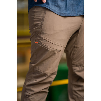 Prenda técnica diseñada para ofrecer máxima movilidad y confort en condiciones exigentes. Fabricado en una mezcla de 88% nylon y 12% spandex, este pantalón de pierna recta combina ligereza con tecnología repelente al agua y protección UV. Su diseño ergonómico destaca por sus rodillas reforzadas en tela Ripstop con pinzas para flexión, cintura elastizada y cinco bolsillos con cierre de seguridad, garantizando un rendimiento superior en terreno, minería y actividades outdoor.